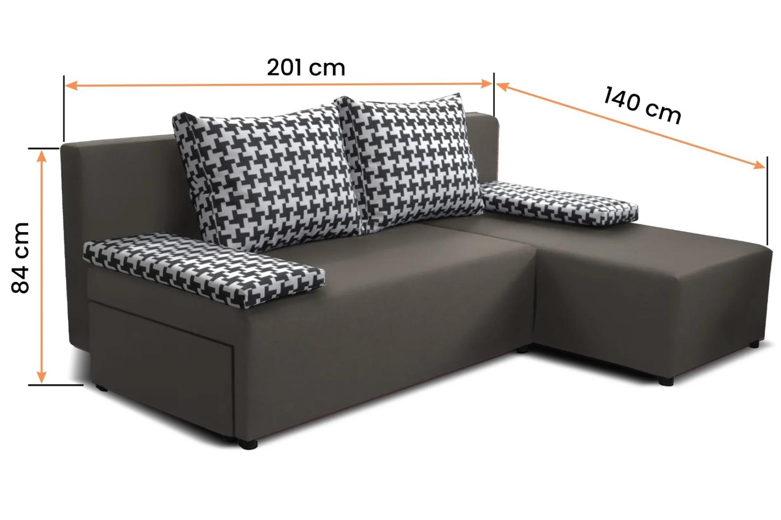 - rozmery: šírka: 201 cm, výška: 84 cm, hĺbka: 140 cm