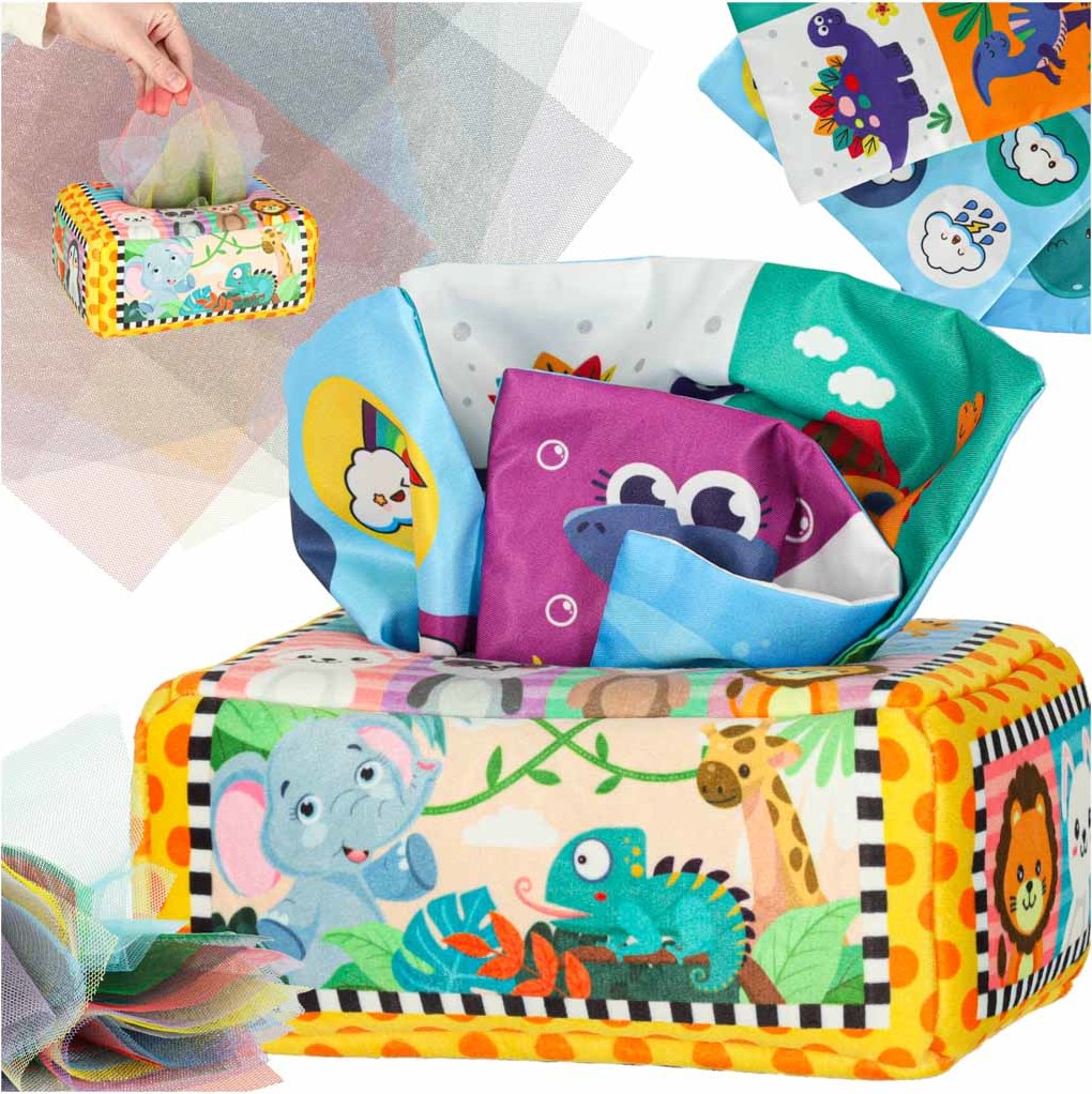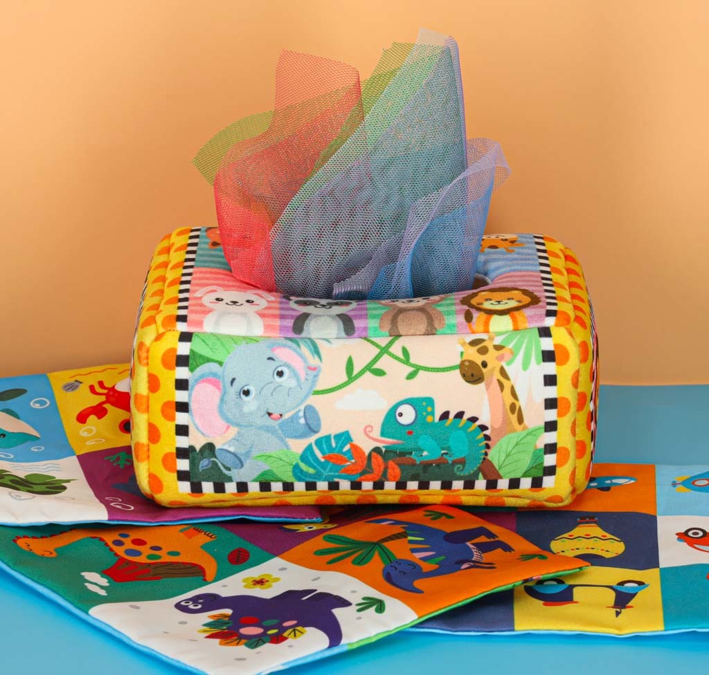 Hľadáte hračku, ktorá poteší vaše dieťa a zároveň podporí jeho motorický a zmyslový vývoj? Tento rozkošný Montessori triedič v podobe mäkkej krabičky s farebnými vreckovkami a vzorovanými látkami je hitom! Výrobok bol navrhnutý s ohľadom na najmenších - je bezpečný, odolný a ľahko sa čistí.