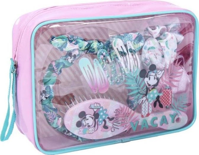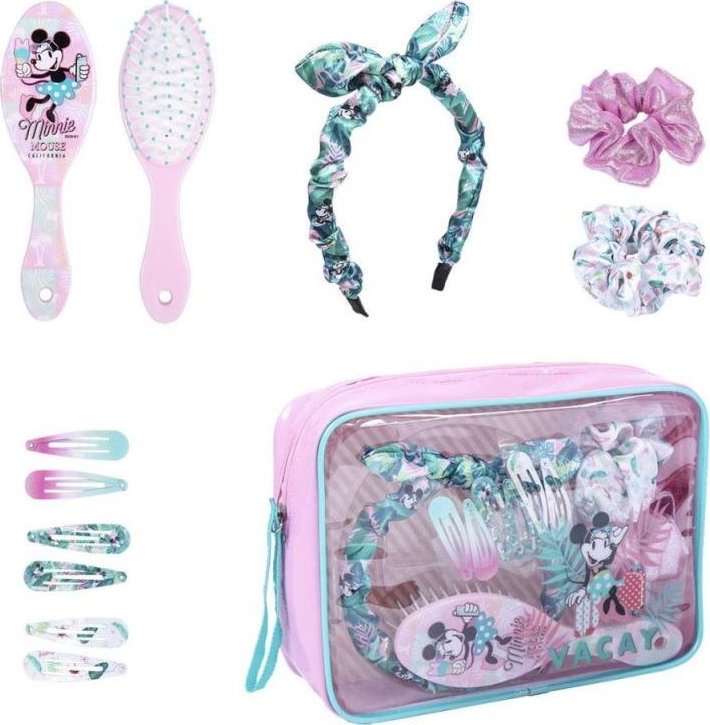 Set doplnkov do vlasov pre dievčatká s motívom Minnie v kozmetickej taštičke. Balenie obsahuje: kefa čelenku 2 gumičky 6 sponiek kozmetickú taštičkuVlastnosti