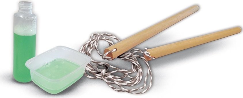 Nafukovanie bublín už nie je rovnaké, ako predtým. Vďaka šikovnému nástroju a super silnému mydlovému koncentrátu si môžete vytvoriť megabubliny! Akú veľkú zvládnete? Držte prúty pri sebe a ponorte lanko do mydlového koncentrátu. Vytiahnite a opatrne prúty dajte od seba. Teraz sa vám vytvorila bublina. Pomaly začnite cúvať a sledujte ako sa bublina neustále zväčšuje. Až už bude dosť veľká, opäť dajte prúty k sebe. Megabublina sa začne vznášať. Sledujte, ako ďaleko doletí! Sada obsahuje: Nástroje na výrobu megabublín, mydlový koncentrát s viečkom (200ml) a plastovú nádobu. Vhodné pre deti od 5 rokov.Vlastnosti