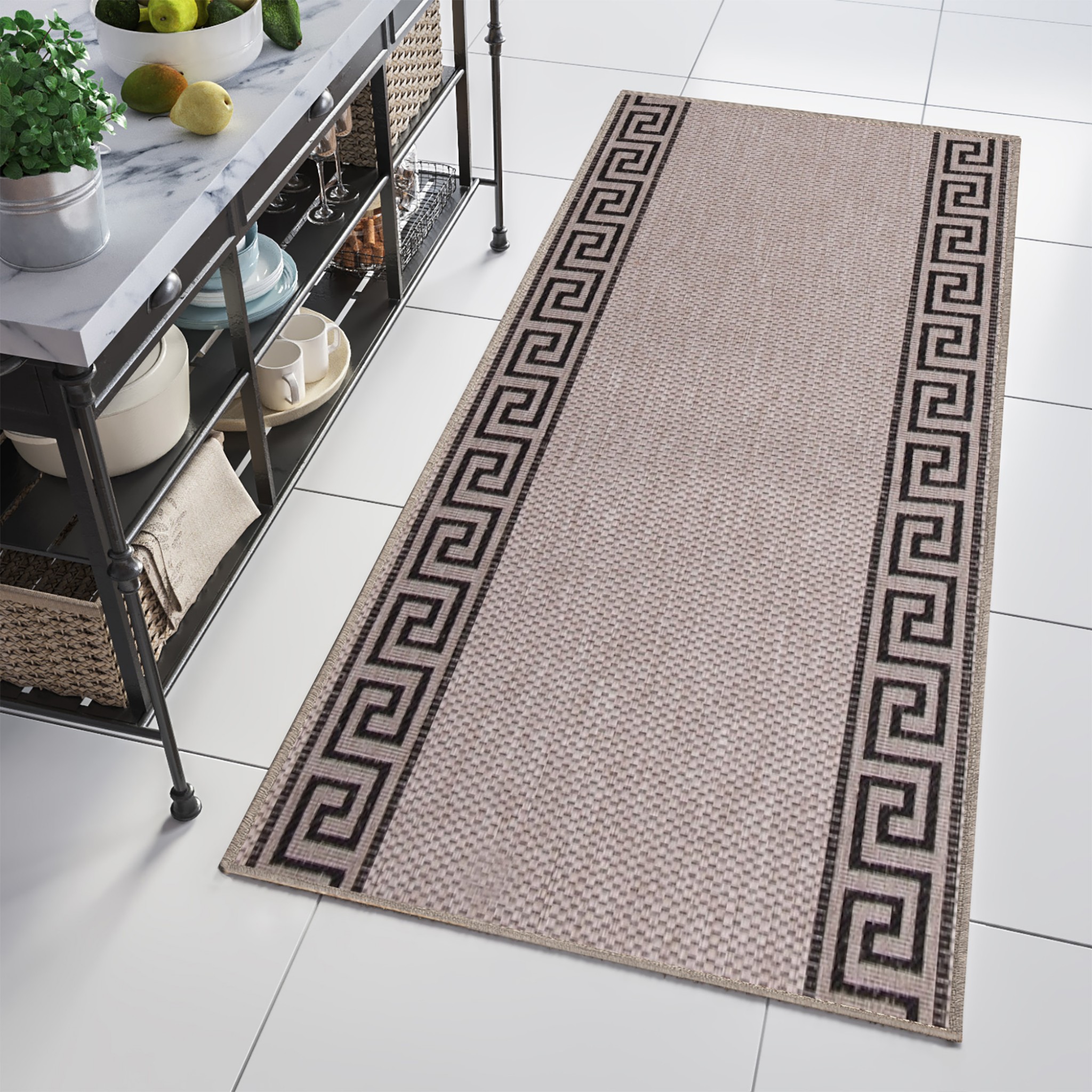 Sisalový PP behúň GREEK - svetlo hnedý / čierny