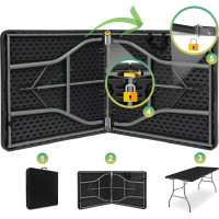 Skladací kempingový/cateringový stôl Rico je veľmi praktický a ľahký. Konštrukcia je vyrobená z ocele. Doska stola je vyrobená z pevného plastu. V zloženom stave tvorí stolík praktický kufor, takže zaberá málo miesta a ľahko sa prenáša. Vďaka jedinečnému dizajnu sa celá konštrukcia schová do dosky stola a vytvorí ergonomický kufor. Maximálne zaťaženie stola je až 100 kg.
