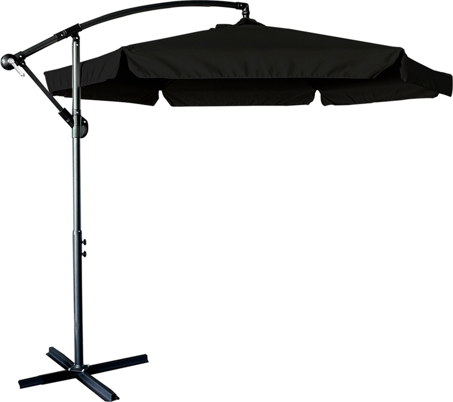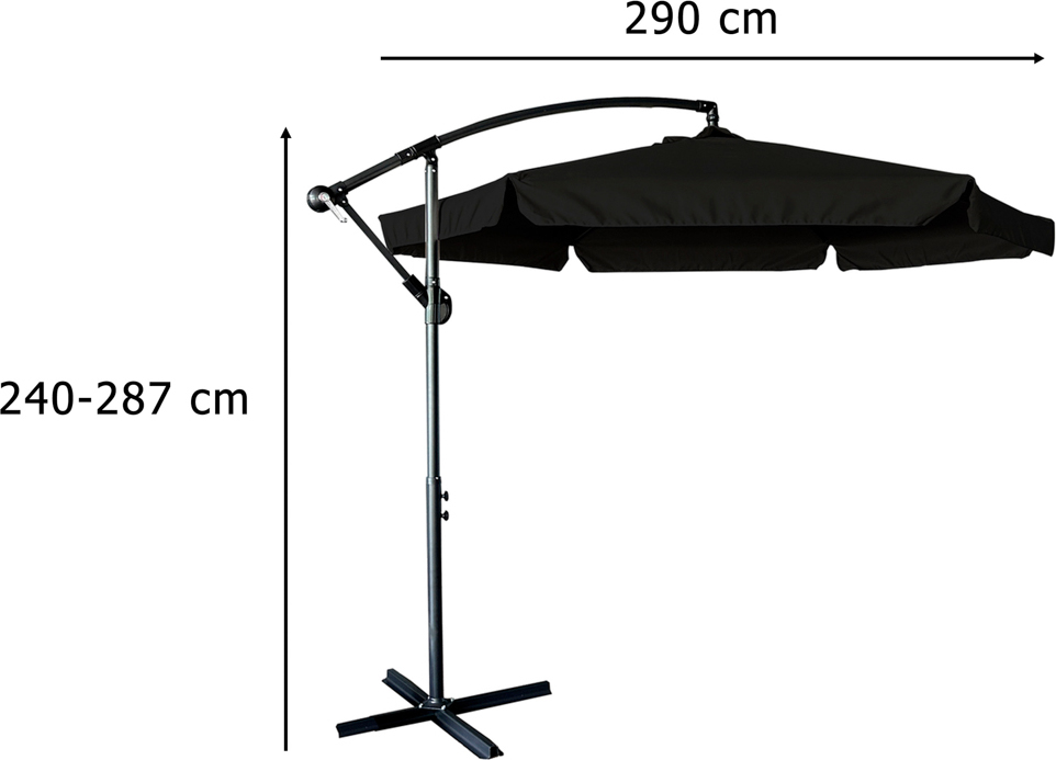 Skladací záhradný slnečník LUARO s predlžovacím ramenom - 290 cm - čierny