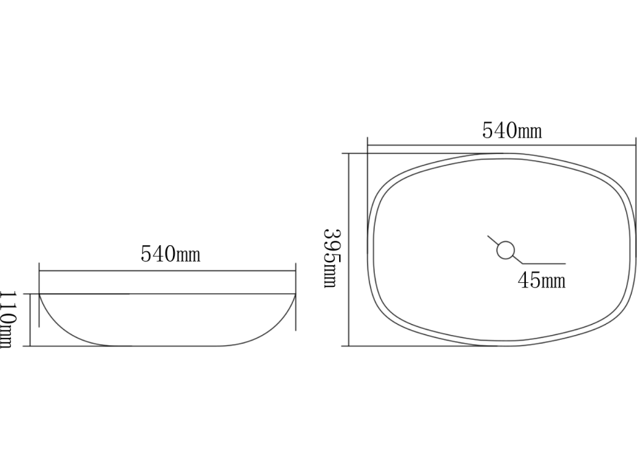 - Rozmer umývadla: 540 x 395 x 110 mm