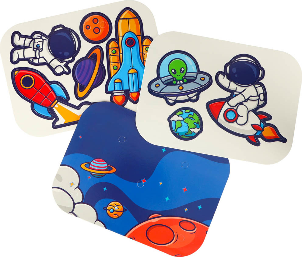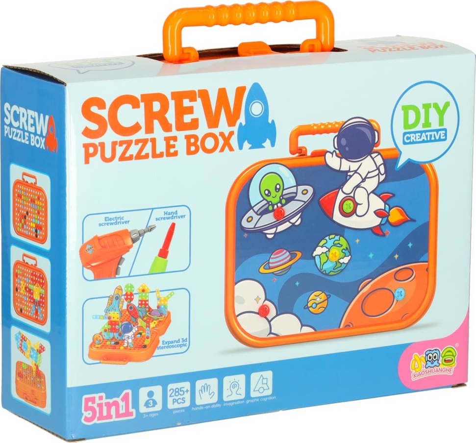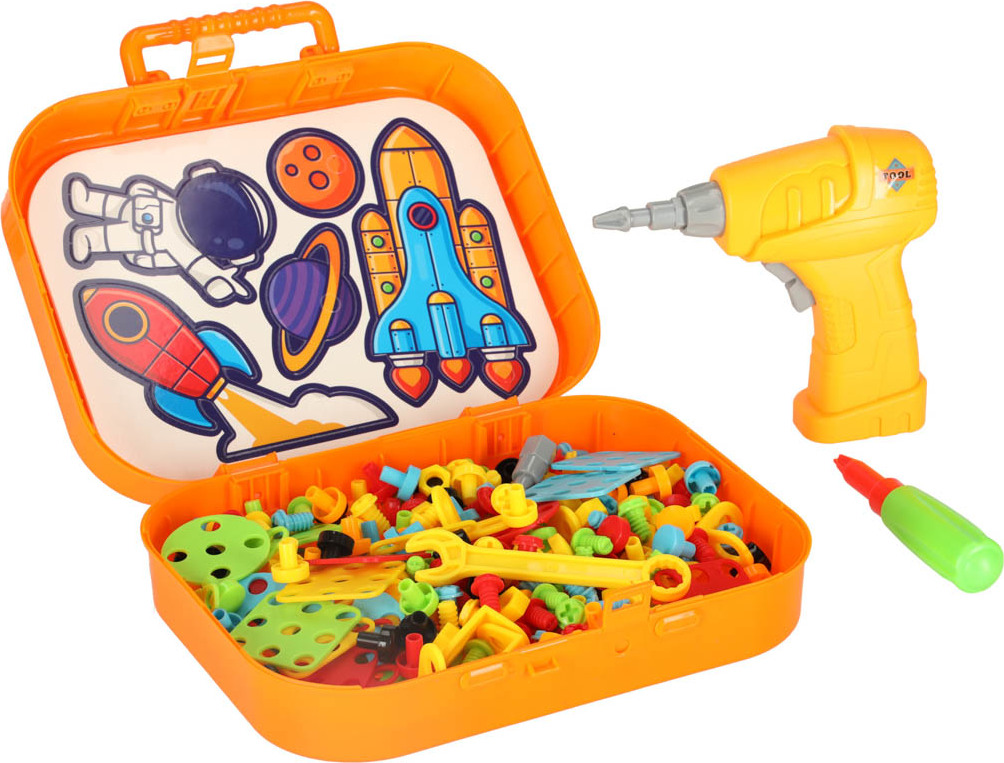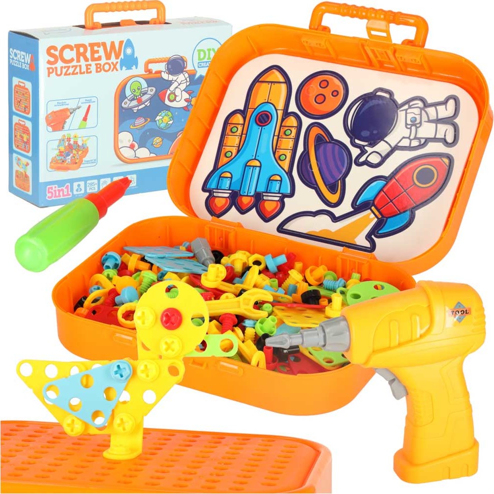 Farebné stavebnice sú perfektnou voľbou pre každé dieťa - poskytnú hodiny zábavy a zároveň rozvíjajú kľúčové zručnosti. Celá sada je dodávaná v praktickom plastovom puzdre, ktoré slúžia na dva účely: slúži ako pohodlné miesto na uloženie kociek a ako kreatívne „plátno“ pre mladého staviteľa. Otvory v puzdre umožňujú vkladanie farebných kociek a skrutiek pomocou skrutkovača alebo vŕtačky (batérie nie je súčasťou balenia). Ďalšie kartónové figúrky s vesmírnym motívom umožňujú vytvárať 3D výtvory. Kocky sú skvelým spôsobom, ako rozvíjať manuálne zručnosti a kreativitu dieťaťa.
