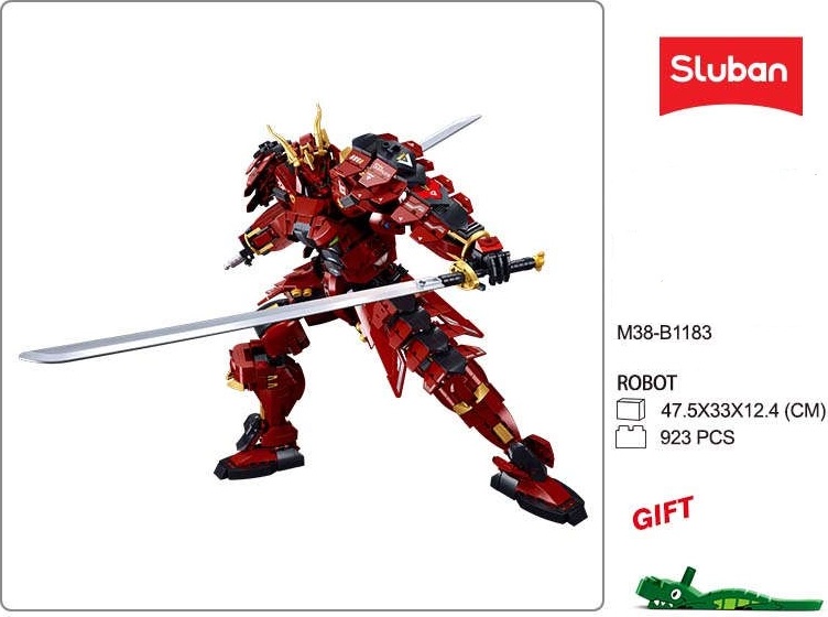 Vstúpte do sveta akčných bitiek s robotom Samurajom – pôsobivou stavebnicou, ktorá spája silu moderného robota so cťou starovekého samuraja. Tento červený bojovník je vyzbrojený dvoma dlhými katanami (tradičné japonské meče so zahnutou čepeľou, symbolom samurajskej cti), má pohyblivé časti tela a detailne spracované brnenie so zlatými doplnkami, ktoré dodáva modelu jedinečný vzhľad. Sluban robot Samuraj je ideálny pre fanúšikov mecha robotov, stavebníc a japonských dokonalý zážitok zo stavania - či už si zberateľ, alebo len milovník originálnych modelov. Sluban je možné kombinovať s podobnými stavebnicami mnohých ďalších významných výrobcov, vrátane LEGO®. Sú vyrábané z kvalitného, nezávadného a odolného ABS plastu a každá stavebnica je opatrená návodom na zostavenie.