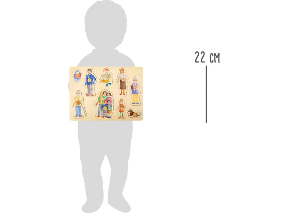 Zastavte sa na okamih a pozrite, ako vaše dieťa pomocou malých prstíkov obratne manipuluje s farebnými kúskami dreva. To nie je len hračka, to je vstupenka do sveta fantázie a rodinných väzieb. Predstavujeme vám Small Foot Drevené puzzle Rodina, kde každý dielik je nabitý radosťou a každá skladačka je príbehom, ktorý čaká, až bude rozprávaný. Vyrobené s nemeckou precíznosťou a starostlivosťou. S láskyplne ilustrovanými dielikmi a drevenými gombíkmi sú tieto puzzle navrhnuté tak, aby rozvíjali jemnú motoriku a trpezlivosť vašich detí, zatiaľ čo sa učia o rodinných väzbách a priateľstve. Je to zábavná a vzdelávacia hračka, ktorá odráža našu zodpovednosť za kvalitu, bezpečnosť a rešpekt k prírode - pre bezstarostné hranie, ktoré môžete dôverovať.