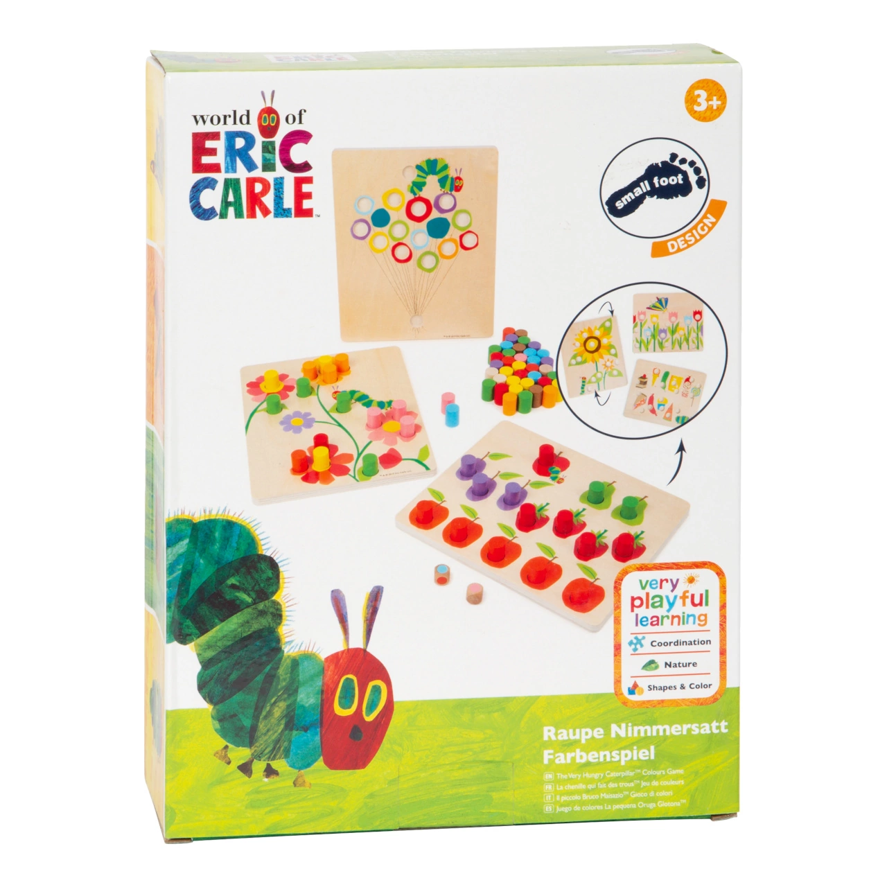 Small foot Farebná hra Caterpillar - kam patrí ktorá farba? Táto hra obsahuje 95 dielikov, ktoré musíte farebne priradiť k hernej doske. Tri herné dosky s dohromady šiestimi obrázkami. Vzdelávacia hra, ktorá precvičuje poznávanie farieb a jemnú motoriku. Herné dosky z pevného dreva majú veľmi kvalitnú potlač, môžete ich uložiť do textilného vrecúška, sú ideálne na cesty.