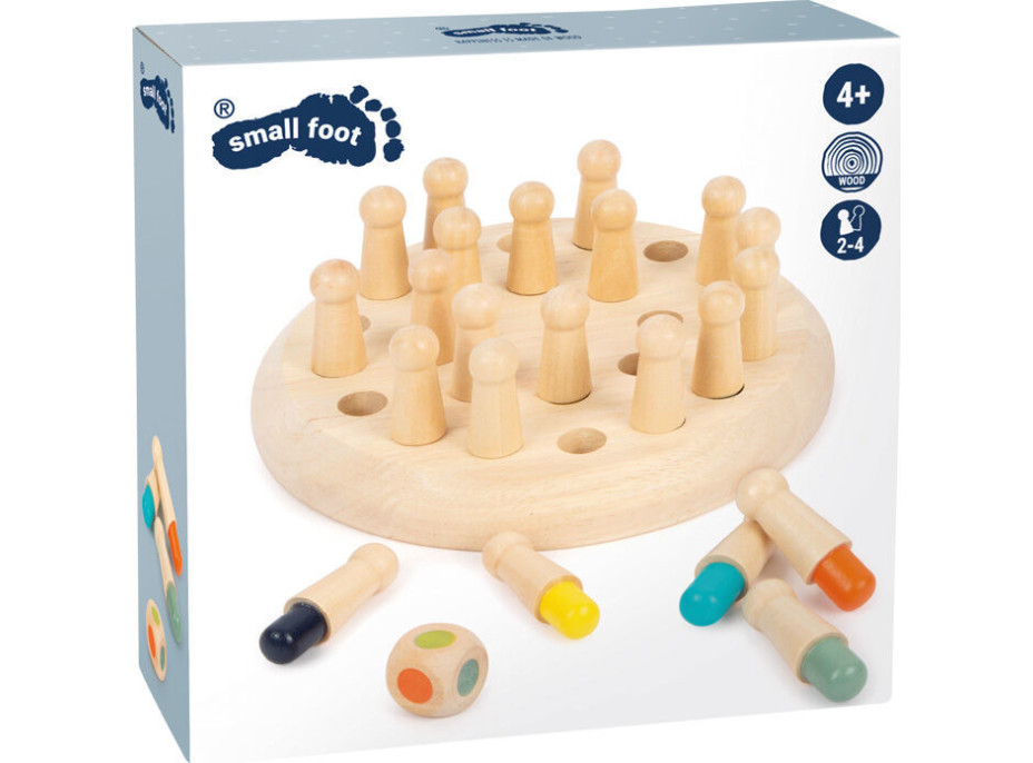 Farebné pexeso pre 2 až 4 hráčov, kocka určuje, ktorú farbu musíte nájsť. Pre zjednodušenie hry hrajte bez kocky. Zábavná hra, ktorá trénuje pamäť všetkých členov rodiny. Dieliky majú 6 rôznych farieb, hračka tak trénuje ich rozpoznávanie. Hravou formou si deti taktiež precvičia sústredenosť, pamät a jemnú motoriku. Vysoko kvalitná hračka z prírodného neošetreného dreva s pevnou konštrukciou.