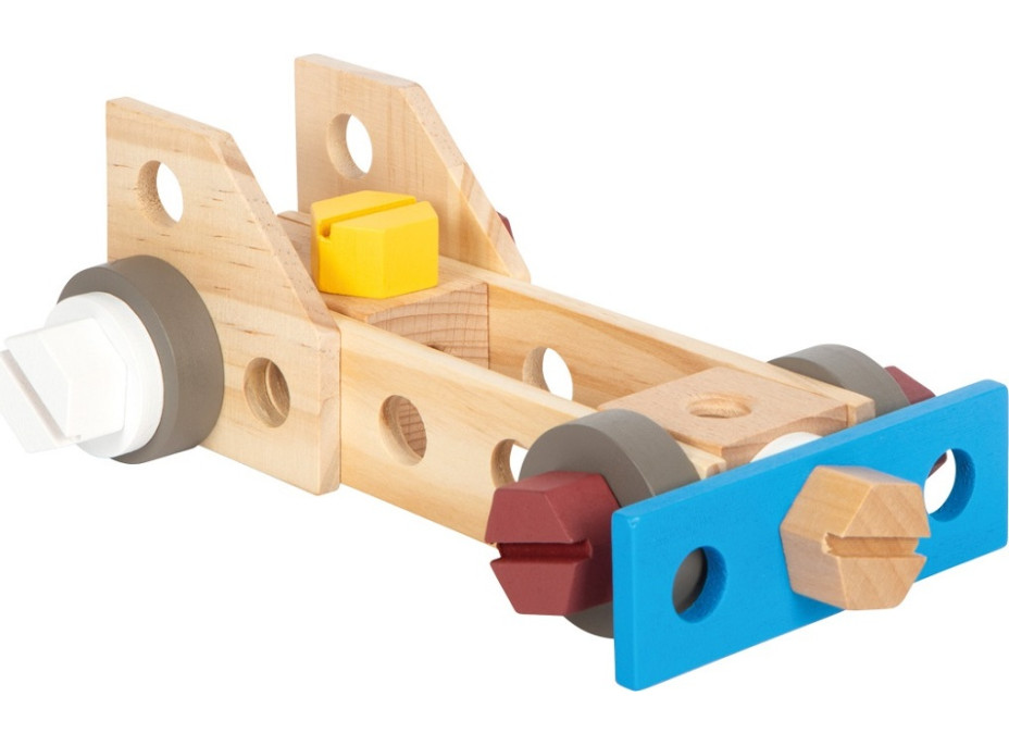 - 5 drevených nástrojov (kladivo, kľúč, skrutkovač, kliešte a píla)