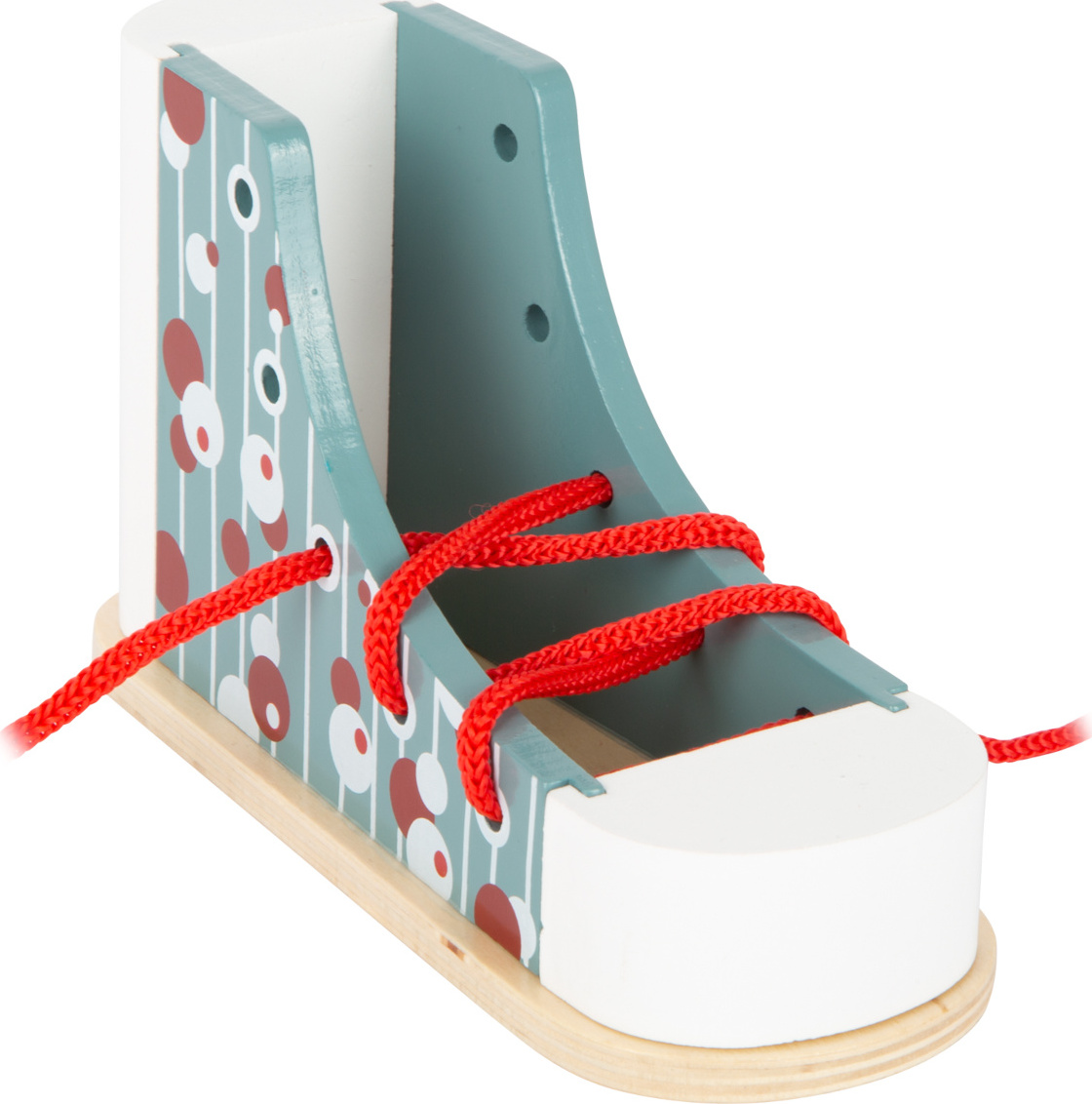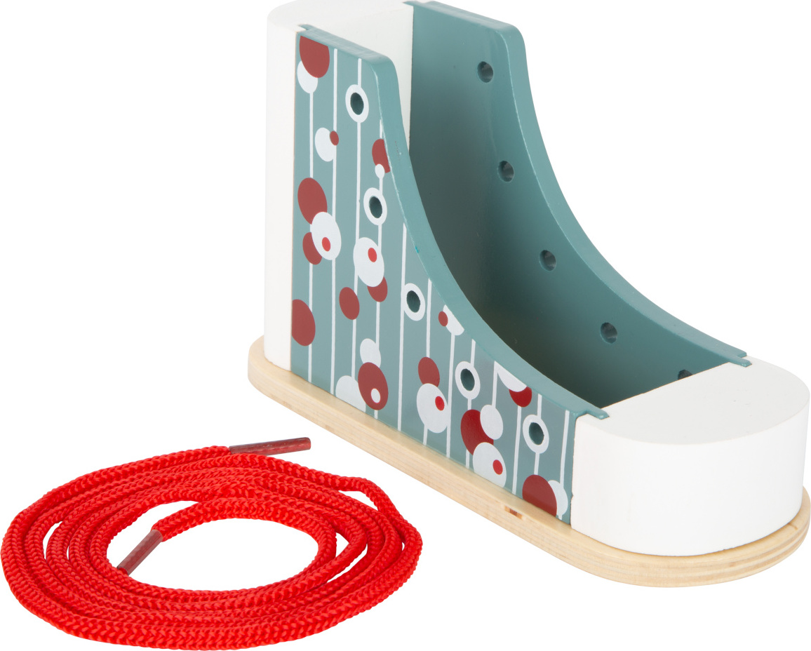Aha, takže takto sa viažu topánky! S touto praktickou drevenou topánkou v modernom dizajne sa deti môžu naučiť viazať svoje šnúrky. Zároveň si precvičia aj trpezlivosť a motorické schopnosti. Stabilná topánka, ktorá ustojí všetky pokusy zaväzovania. Pre deti môže byť viazanie šnúrok naozaj ťažké, preto je táto topánka ideálnou učebnou pomôckou. Vhodné už pre škôlkové deti.