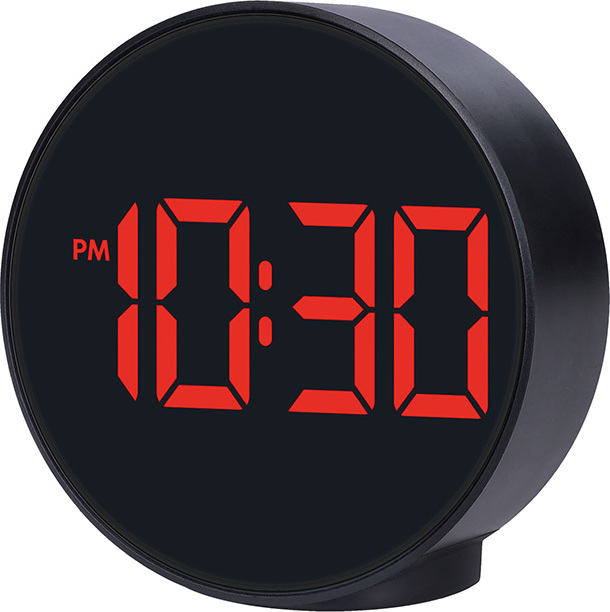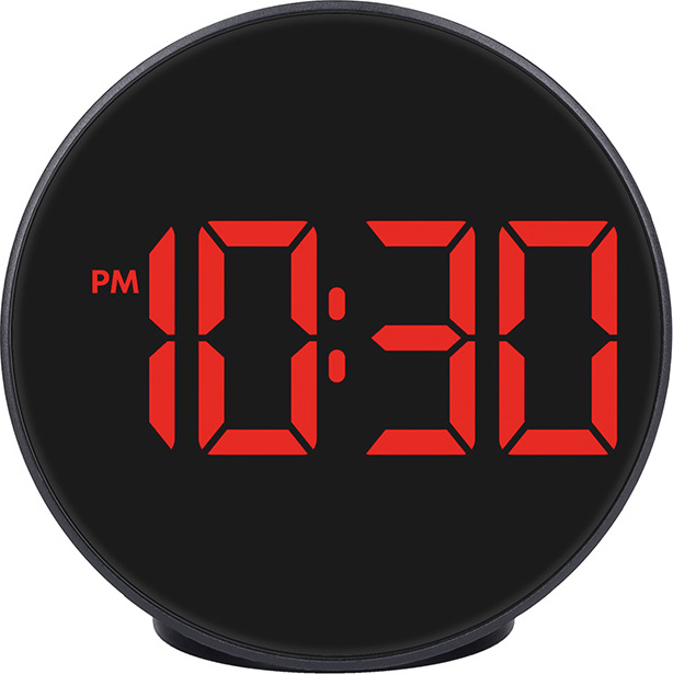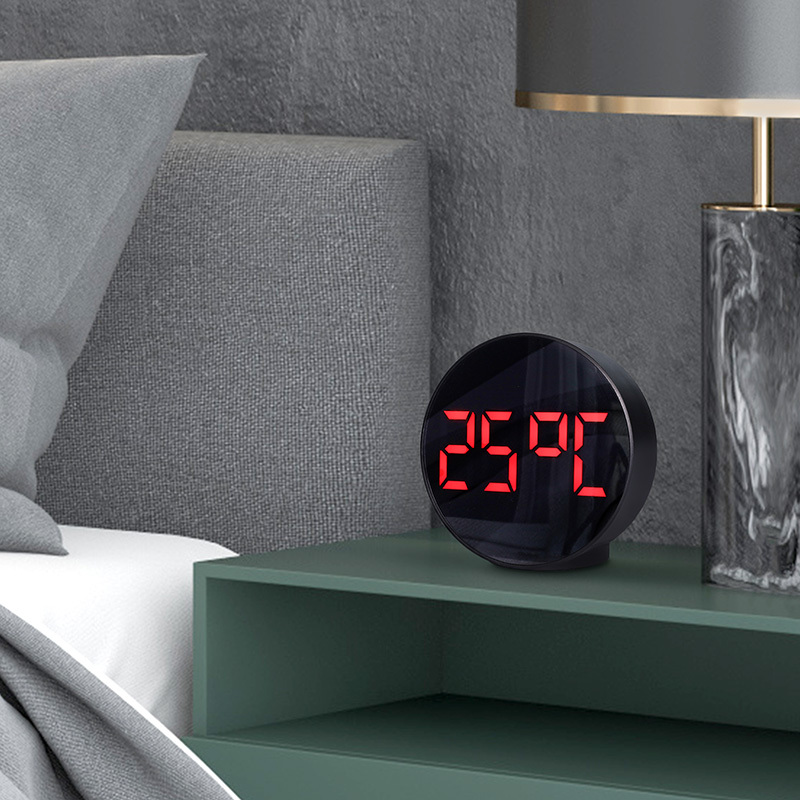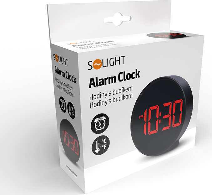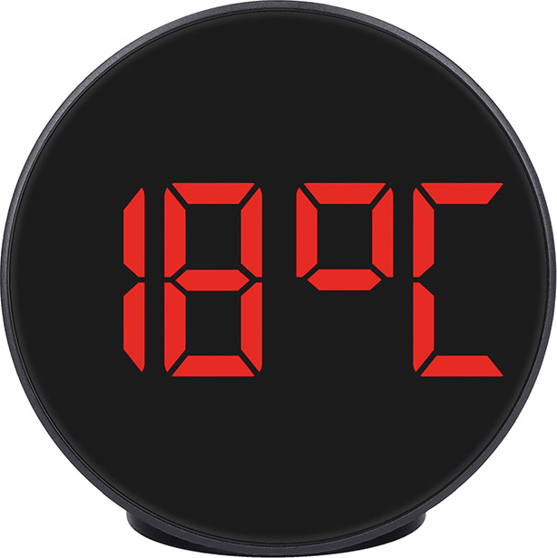 Digitálny budík s LED displejom a teplomerom. Tento moderný budík zobrazuje čas a teplotu na LED displeji s možnosťou prepínania medzi jednotkami °C/°F. Disponuje tromi úrovňami jasu a nočným režimom, ktorý automaticky znižuje jas počas nastaveného časového intervalu. Jednoduché nastavenie budíka s možnosťou jeho vypnutia zaistí pohodlné používanie. Napájanie 3× AAA batériami alebo cez DC 5V.