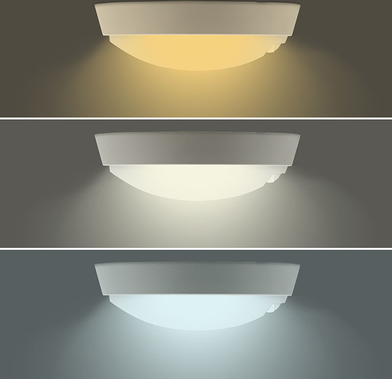 - svetlo s pohybovým sensorom, špeciálnym LED zdrojom s prepínačom, ktorý umožňuje nastavenie teploty svetla (CCT/chromatickosti) 3000K, 4000K alebo 6500K. Súčasne je možné voliť príkon medzi 15/18/20W Súčasťou balenia je čierny aj biely kryt svetla, ktorý je možné podľa potreby vymeniť.