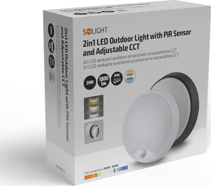 Solight LED vonkajšie osvetlenie so senzorom, 3 CCT, 15/18/20W, 1800lm, 22cm, 2v1 - biely a čierny kryt