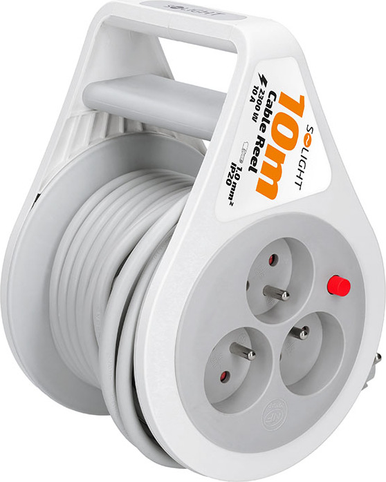 Solight predlžovací prívod na bubne 10m, 3 zásuvky, šedý kábel, 3x 1,0mm2
