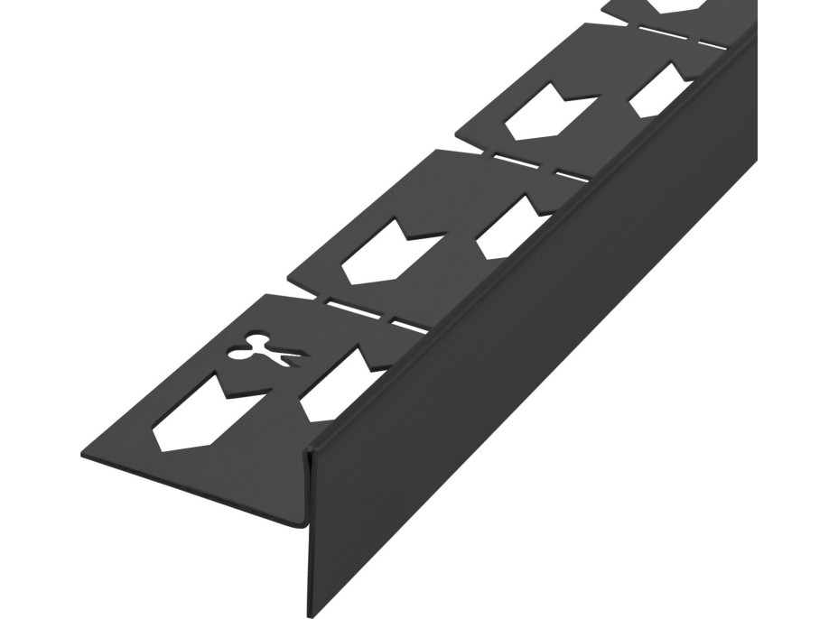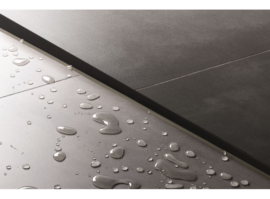 Spádová lišta je vyrobená z nerezovej ocele AISI 304 o hrúbke 1 mm s čiernou matnou povrchovou úpravou. Okrajová lišta je segmentovaná po 5 cm, nech si ju môže zrezať na požadovanú dĺžku.