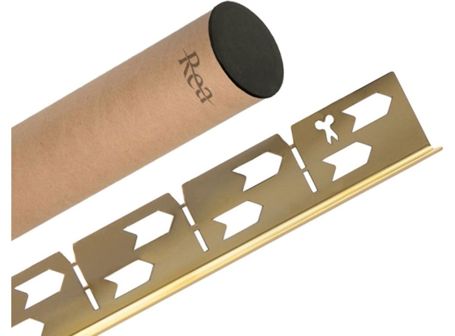 Spádová lišta je vyrobená z nerezovej ocele AISI 304 o hrúbke 1 mm so zlatou lesklou povrchovou úpravou. Okrajová lišta je segmentovaná po 5 cm, nech si ju môže zrezať na požadovanú dĺžku.