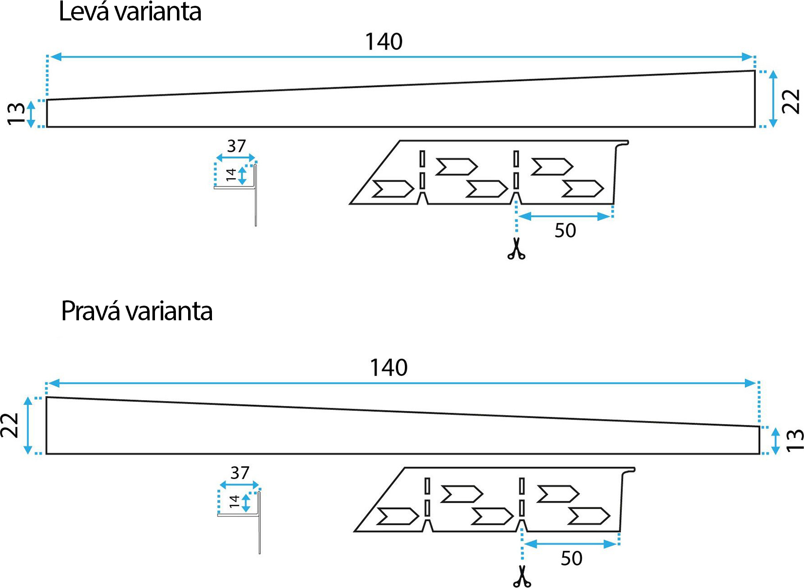 Spádová lišta je vyrobená z nerezovej ocele AISI 304 o hrúbke 1 mm so zlatou leskou povrchovou úpravou. Okrajová lišta je segmentovaná po 5 cm, nech si ju môže zrezať na požadovanú dĺžku.