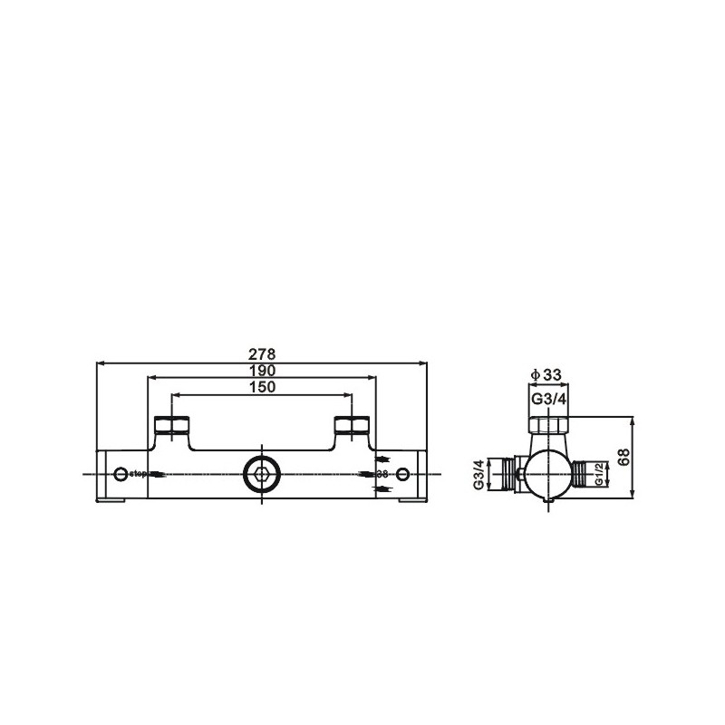 - Termostatická batéria s keramickou hlavou (rozteč 150 mm)
