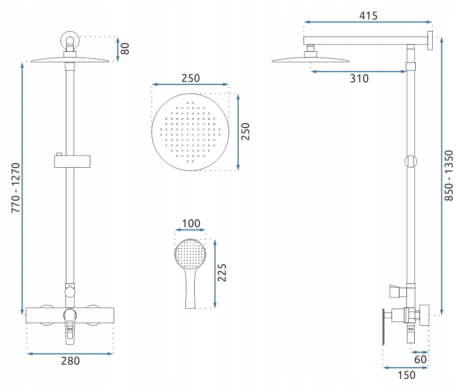 - Výškovo nastaviteľný posuvný držiak pre ručnú sprchovú hlavicu