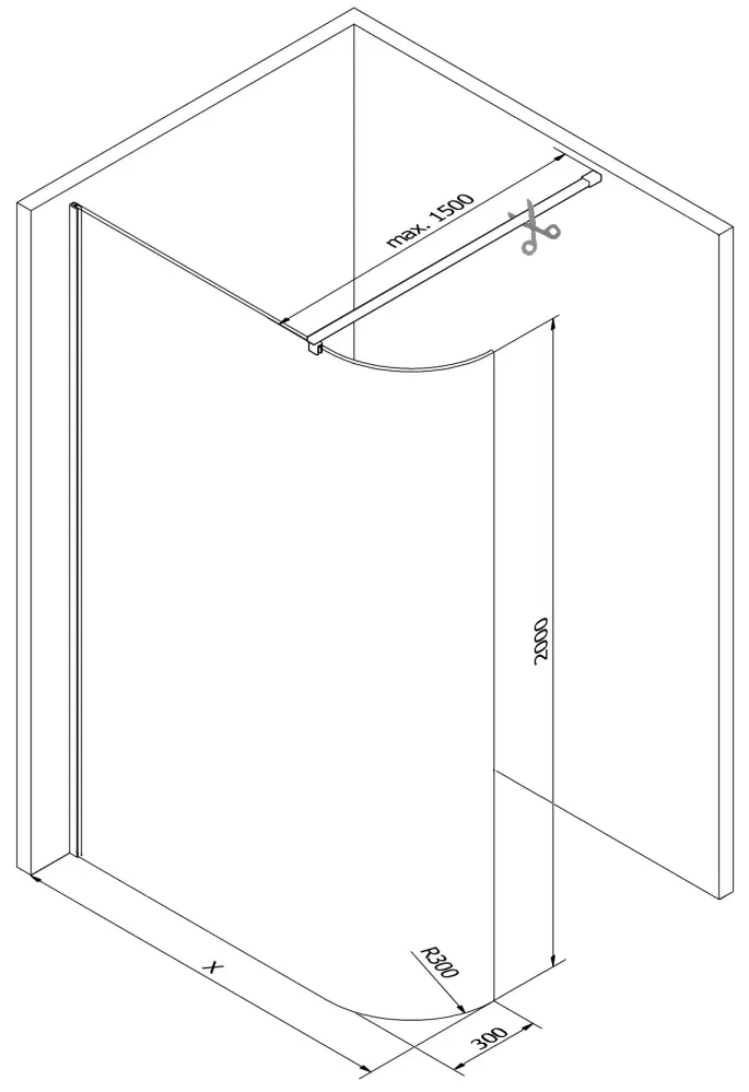 Zástena je uchytená v hliníkovom profile a ramenom do steny. Vďaka regulácii v profiloch je možné vyrovnať mierne nerovnosti stien.