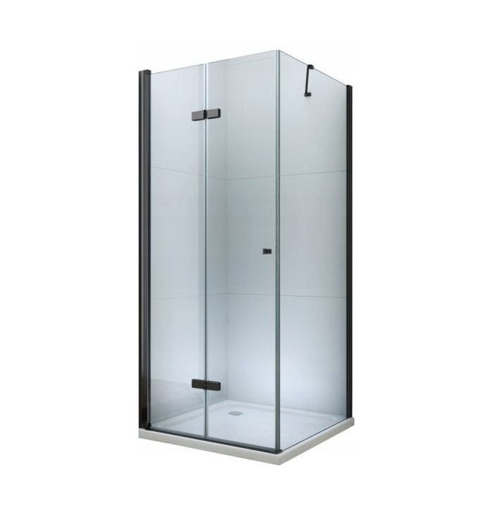 Skvelá voľba do každej kúpeľne. Elegantný sprchovací kút je vyrobený z 6 mm hrubého tvrdeného skla v čírom prevedení. Aplikovaná povrchová úprava skla zaisťuje maximálny komfort všetkým užívateľom. Táto technológia zaručuje jedinečné vlastnosti zabraňujúce znečisteniu skla - povrch stačí iba opláchnuť vodou. Kút je uchytený v čiernych hliníkových profiloch a je vybavený tesnením zabraňujúcim úniku vody mimo sprchovací kút. Dvere sprchového kúta sú skladacie (dve sklá spojené kvalitnými pántami s možnosťou zloženia dovnútra aj von). Na otváranie slúži decentná kovová rukoväť.