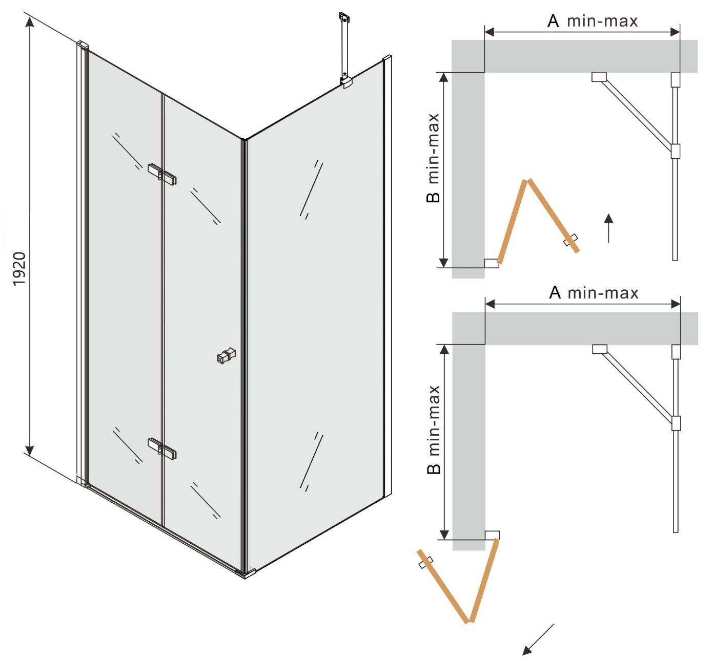 Sprchový kút je univerzálny - pri montáži si zvolíte otváranie doprava alebo doľava. Profilové lišty umožňujú reguláciu na vyrovnanie prípadných nerovností stien. Sprchový kút je možné inštalovať na sprchovú vaničku alebo priamo na podlahu so sprchovým žľabom. Vanička nie je súčasťou sprchovacieho kúta. Sprchové vaničky, odtokové žľaby a ďalšie vybavenie kúpeľní môžete dokúpiť v našom eshope.