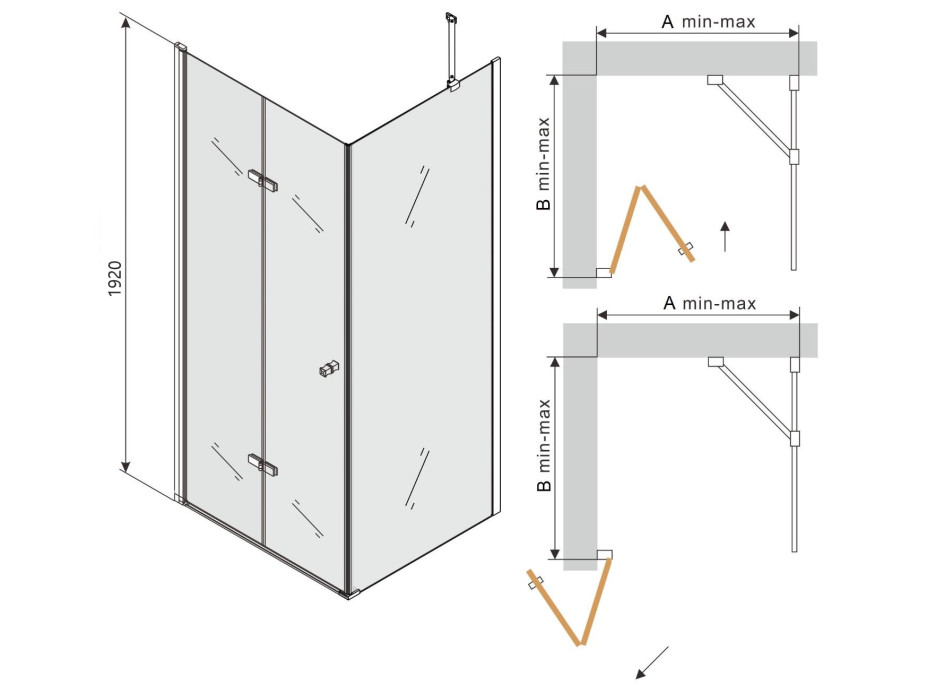 Sprchový kút je univerzálny - pri montáži si zvolíte otváranie doprava alebo doľava. Profilové lišty umožňujú reguláciu na vyrovnanie prípadných nerovností stien. Sprchový kút je možné inštalovať na sprchovú vaničku alebo priamo na podlahu so sprchovým žľabom. Vanička nie je súčasťou sprchovacieho kúta. Sprchové vaničky, odtokové žľaby a ďalšie vybavenie kúpeľní môžete dokúpiť v našom eshope.