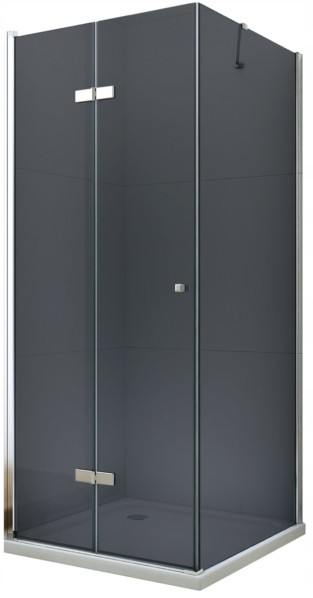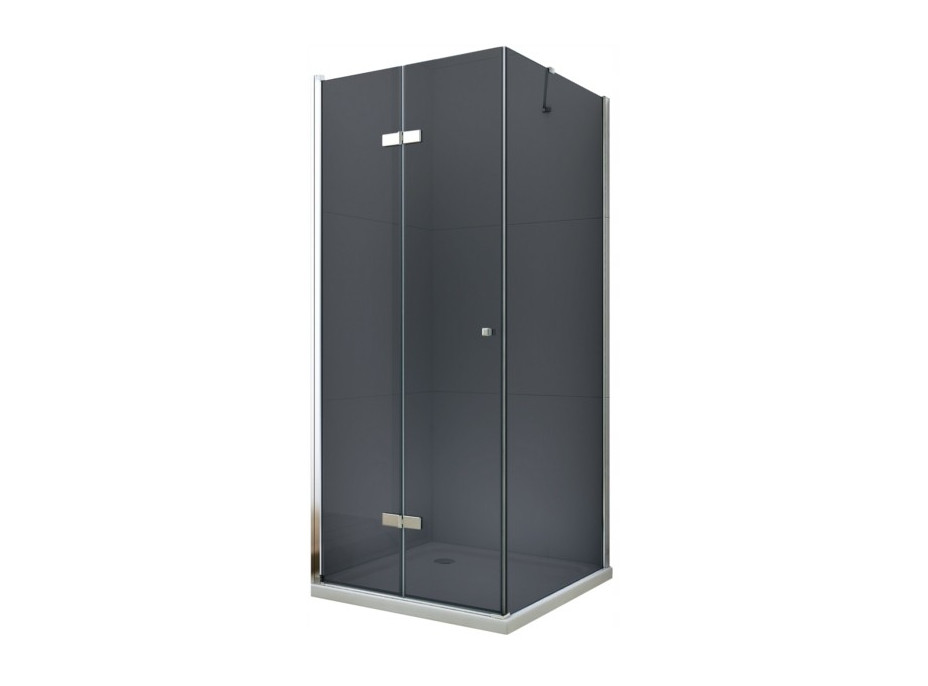 Skvelá voľba do každej kúpeľne. Elegantný sprchovací kút je vyrobený z 6 mm hrubého tvrdeného skla v grafitovom (dymovom) prevedení. Aplikovaná povrchová úprava skla zaisťuje maximálny komfort všetkým užívateľom. Táto technológia zaručuje jedinečné vlastnosti zabraňujúce znečisteniu skla - povrch stačí iba opláchnuť vodou. Kút je uchytený v chrómovaných hliníkových profiloch a je vybavený tesnením zabraňujúcim úniku vody mimo sprchovací kút. Dvere sprchového kúta sú skladacie (dve sklá spojené kvalitnými pántami s možnosťou zloženia dovnútra aj von). Na otváranie slúži decentná kovová rukoväť.