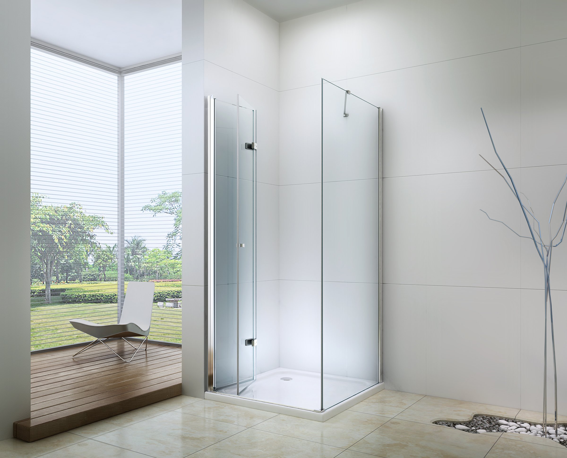 Skvelá voľba do každej kúpeľne. Elegantný sprchovací kút je vyrobený z 6 mm hrubého tvrdeného skla v čírom prevedení. Aplikovaná povrchová úprava skla zaisťuje maximálny komfort všetkým užívateľom. Táto technológia zaručuje jedinečné vlastnosti zabraňujúce znečisteniu skla - povrch stačí iba opláchnuť vodou. Kút je uchytený v chrómovaných hliníkových profiloch a je vybavený tesnením zabraňujúcim úniku vody mimo sprchovací kút. Dvere sprchového kúta sú skladacie (dve sklá spojené kvalitnými pántami s možnosťou zloženia dovnútra aj von). Na otváranie slúži decentná kovová rukoväť.