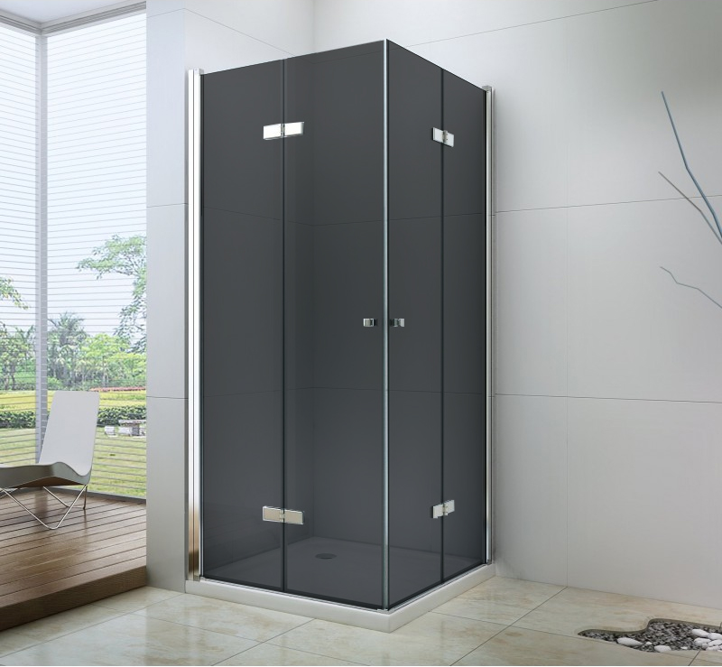Skvelá voľba do každej kúpeľne. Elegantný sprchový kút je vyrobený z 6 mm hrubého tvrdeného skla v grafitovom (dymovom) prevedení. Aplikovaná povrchová úprava skla zaisťuje maximálny komfort všetkým užívateľom. Táto technológia zaručuje jedinečné vlastnosti zabraňujúce znečisteniu skla - povrch stačí iba opláchnuť vodou. Kút je uchytený v chrómovaných hliníkových profiloch a je vybavený tesnením zabraňujúcim úniku vody mimo sprchovací kút. Dvere sprchovacieho kúta sú skladacie (dve sklá spojená kvalitnými pánty s možnosťou zloženia dovnútra aj von). Na otváranie slúži decentné kovová rukoväť.
