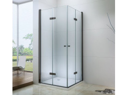 Skvelá voľba do každej kúpeľne. Elegantný sprchový kút je vyrobený z 6 mm hrubého tvrdeného skla v čírom prevedení. Aplikovaná povrchová úprava skla zaisťuje maximálny komfort všetkým užívateľom. Táto technológia zaručuje jedinečné vlastnosti zabraňujúce znečisteniu skla - povrch stačí iba opláchnuť vodou. Kút je uchytený v čiernych hliníkových profiloch a je vybavený tesnením zabraňujúcim úniku vody mimo sprchovací kút. Dvere sprchovacieho kúta sú skladacie (dve sklá spojené kvalitnými pántmi s možnosťou zloženia dovnútra aj von). Na otváranie slúži decentná kovová rukoväť.