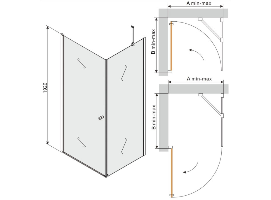 Sprchový kút je univerzálny - pri montáži si zvolíte otváranie doprava alebo doľava. Profilové lišty umožňujú reguláciu na vyrovnanie prípadných nerovností stien. Sprchový kút je možné inštalovať na sprchovú vaničku alebo priamo na podlahu so sprchovým žľabom. Vanička nie je súčasťou sprchovacieho kúta. Sprchové vaničky, odtokové žľaby a ďalšie vybavenie kúpeľní môžete dokúpiť v našom eshope.