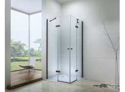 Skvelá voľba do každej kúpeľne. Elegantný sprchovací kút je vyrobený z 6 mm hrubého tvrdeného skla v čírom prevedení. Aplikovaná povrchová úprava skla zaisťuje maximálny komfort všetkým užívateľom. Táto technológia zaručuje jedinečné vlastnosti zabraňujúce znečisteniu skla - povrch stačí iba opláchnuť vodou. Kút je uchytený v čiernych hliníkových profiloch a je vybavený tesnením zabraňujúcim úniku vody mimo sprchovací kút. Dvere sprchového kúta sú krídlové. Na otváranie slúži decentná kovová rukoväť. Dokonalú stabilitu sprchovacieho kúta zaisťujú dve ukotvujúce ramená, ktoré sú súčasťou výrobku.