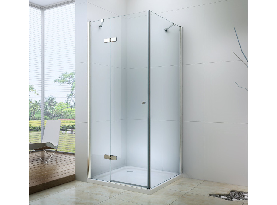 Skvelá voľba do každej kúpeľne. Elegantný sprchovací kút je vyrobený z 6 mm hrubého tvrdeného skla v čírom prevedení. Aplikovaná povrchová úprava skla zaisťuje maximálny komfort všetkým užívateľom. Táto technológia zaručuje jedinečné vlastnosti zabraňujúce znečisteniu skla - povrch stačí iba opláchnuť vodou. Kút je uchytený v chrómovaných hliníkových profiloch a je vybavený tesnením zabraňujúcim úniku vody mimo sprchovací kút. Dvere sprchového kúta sú krídlové. Na otváranie slúži decentná kovová rukoväť. Dokonalú stabilitu sprchovacieho kúta zaisťujú dve ukotvujúce ramená, ktoré sú súčasťou výrobku.