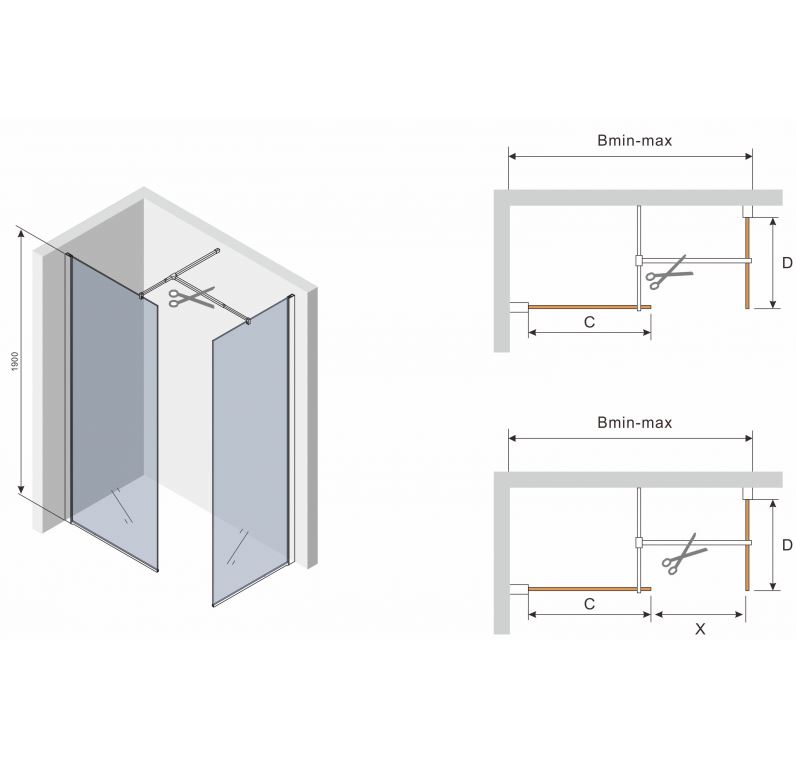 Sprchovací kút je univerzálny - pri montáži si zvolíte ľavú či pravú orientáciu. Profilové lišty umožňujú reguláciu pre vyrovnanie prípadných nerovností stien. Sprchovací kút možné inštalovať na sprchovú vaničku alebo priamo na podlahu so sprchovacím žľabom. Vanička nie je súčasťou sprchovacieho kúta. Sprchové vaničky, odtokové žľaby a ďalšie vybavenie kúpeľní môžete dokúpiť v našom eshope.