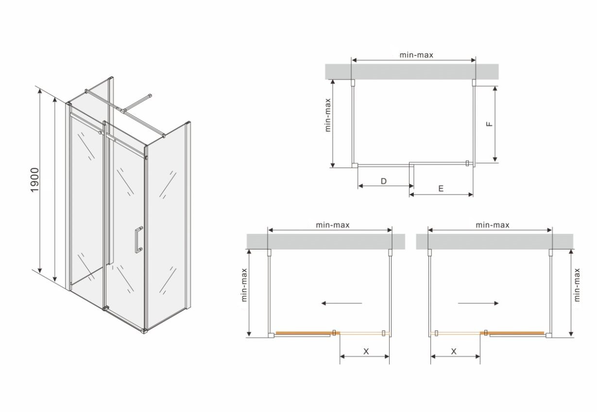 Sprchový kút je univerzálny - pri montáži si zvolíte otváranie doprava alebo doľava. Skladá sa z prednej steny s posuvnými dverami (jeden diel pevný a druhý posuvný) a dvoch bočných pevných stien pripevnených stabilizačným ramenom. Profilové lišty umožňujú reguláciu na vyrovnanie prípadných nerovností steny. Sprchový kút je možné inštalovať na sprchovú vaničku alebo priamo na podlahu so sprchovým žľabom. Vanička nie je súčasťou sprchovacieho kúta. Sprchové vaničky, odtokové žľaby a ďalšie vybavenie kúpeľní môžete dokúpiť v našom eshope.