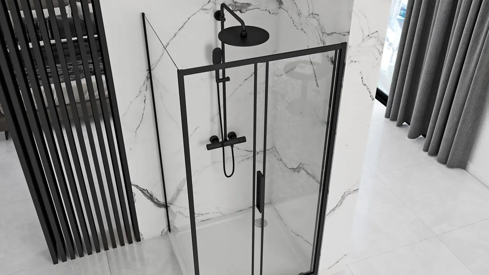 Zostavenie kúta je univerzálny na obe strany. Ľavú či pravú orientáciu kúta si zvolíte pri montáži. Tiež si môžete vybrať medzi montážou kúta na sprchovú vaničku alebo priamo na podlahu.