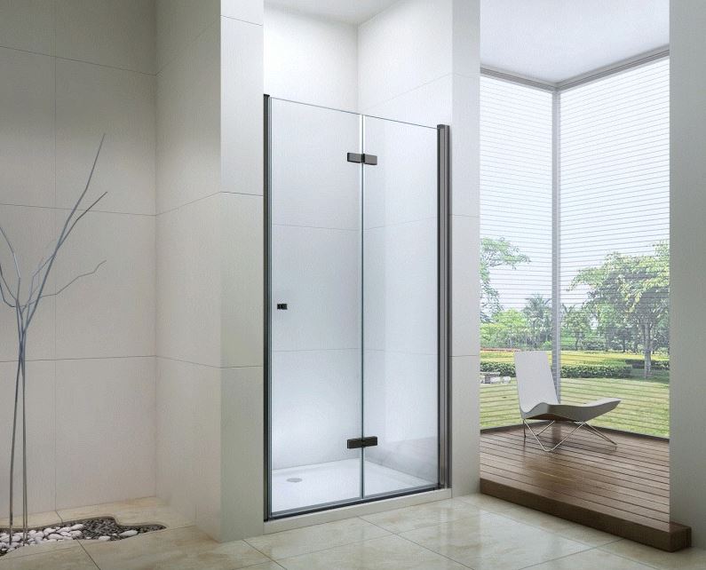 Skvelá voľba do každej kúpeľne. Elegantné sprchové dvere sú vyrobené z 6 mm hrubého tvrdeného číreho skla. Aplikovaná povrchová úprava skla zaisťuje maximálny komfort všetkým užívateľom. Táto technológia zaručuje jedinečné vlastnosti zabraňujúce znečisteniu skla - povrch stačí iba opláchnuť vodou. Dvere sú uchytené v čiernom hliníkovom profile a sú vybavené tesnením zabraňujúcim úniku vody mimo sprchovací kút. Sprchové dvere sú zalamovacie (dve sklá spojené kvalitnými pántami s možnosťou zloženia dovnútra aj von). Na otváranie slúži decentná kovová rukoväť.