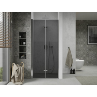 Skvelá voľba do každej kúpeľne. Elegantné sprchové dvere sú vyrobené z 6 mm hrubého tvrdeného skla v grafitovom (dymovom) prevedení . Aplikovaná povrchová úprava zaisťuje maximálny komfort všetkým užívateľom. Táto technológia vyžaduje jedinečné vlastnosti zabraňujúce znečisteniu skla - povrch stačí iba opláchnuť vodou. Dvere sú uchytené v chrómovanom hliníkovom profile a sú únikom tesnením zabraňujúcim vode mimo sprchovací kút. Sprchové dvere sú zalamovacie (dve sklá spojené kvalitnými nohavičkami s možnosťou zloženia dovnútra aj von). Na otváranie slúži decentná kovová rukoväť.