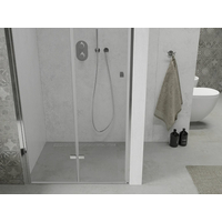 Skvelá voľba do každej kúpeľne. Elegantné sprchové dvere sú vyrobené z 6 mm hrubého tvrdeného číreho skla. Aplikovaná povrchová úprava skla zaisťuje maximálny komfort všetkým užívateľom. Táto technológia zaručuje jedinečné vlastnosti zabraňujúce znečisteniu skla - povrch stačí iba opláchnuť vodou. Dvere sú uchytené v chrómovanom hliníkovom profile a sú vybavené tesnením zabraňujúcim úniku vody mimo sprchovací kút. Sprchové dvere sú zalamovacie (dve sklá spojené kvalitnými pántami s možnosťou zloženia dovnútra aj von). Na otváranie slúži decentná kovová rukoväť.