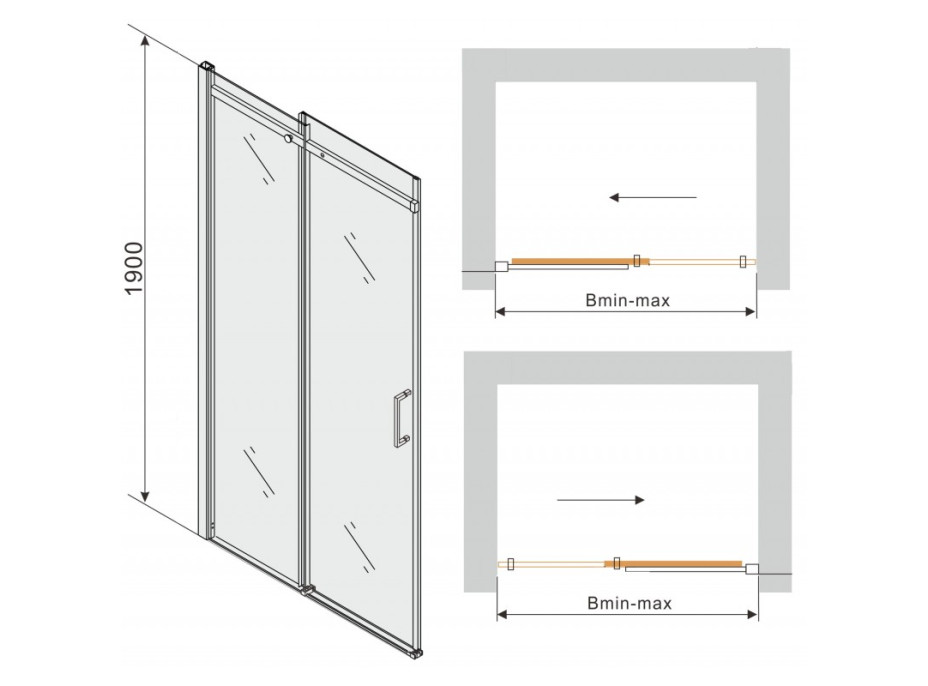 Dvere sú univerzálne - pri montáži si zvolíte otváranie doprava či doľava. Profilová lišta umožňuje reguláciu pre vyrovnanie prípadných nerovností stien. Sprchové dvere možno inštalovať na sprchovú vaničku alebo priamo na podlahu so sprchovým žľabom. Vanička nie je súčasťou sprchových dverí. Sprchové vaničky, odtokové žľaby a ďalšie vybavenie kúpeľní môžete dokúpiť v našom eshope.