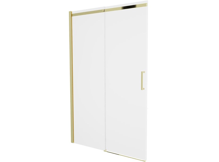 Skvelá voľba do každej kúpeľne. Exkluzívne sprchové dvere sú vyrobené z 8 mm hrubého tvrdeného číreho skla. Aplikovaná povrchová úprava skla zaisťuje maximálny komfort všetkým užívateľom. Táto technológia zaručuje jedinečné vlastnosti zabraňujúce znečisteniu skla. Dvere sú uchytené v hliníkovom profile so zlatou povrchovou úpravou a sú vybavené tesnením zabraňujúcim úniku vody mimo sprchový kút. Sprchové dvere sú posuvné (pojazdy s kvalitnými odolnými kolieskami). Na otváranie slúži elegantná kovová rukoväť.