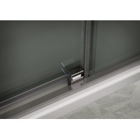 Posuvné bezbariérové sklenené steny URBAN ESSENCE N1FS riešia atypické vstupy v priestranných kúpeľniach. Veľmi luxusný vzhľad a design je podporený profilom z matného hliníka a výrazným pochrómovaným madlom. Dodáva sa buď v ľavom SX alebo pravom DX prevedení. Možno dokúpiť bočné pevné steny Essence F1, pomocou ktorých poskladáte praktický sprchovací kút. Výška zásten je 2 m.