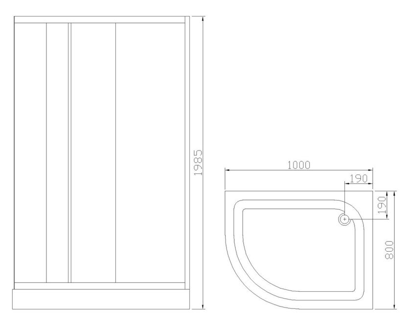 Rozměr sprchového koutu 80 x 100 x 198,5 cm (šířka x hloubka x výška vč. vaničky)