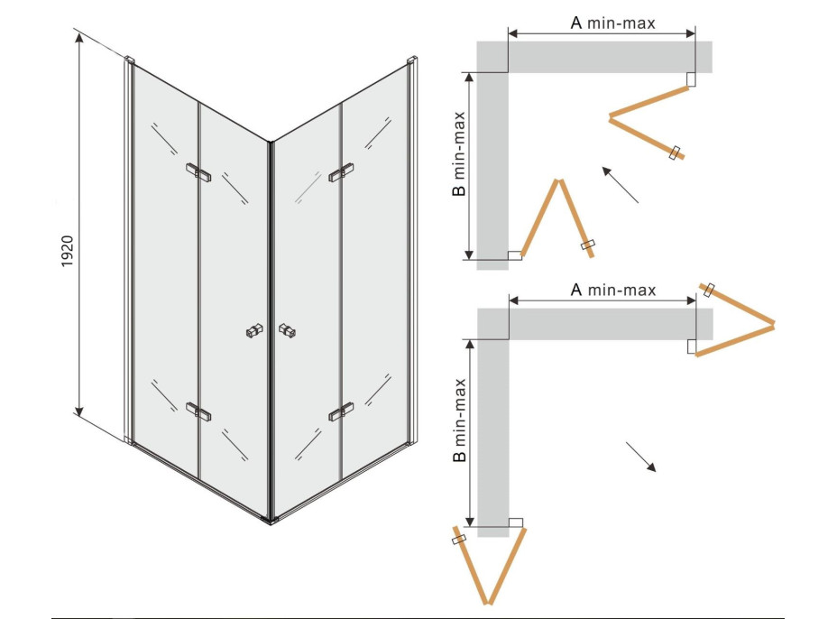 Sprchový kút je univerzálny - pri montáži si zvolíte pravú alebo ľavú orientáciu. Profilové lišty umožňujú reguláciu na vyrovnanie prípadných nerovností stien. Sprchový kút je možné inštalovať na sprchovú vaničku alebo priamo na podlahu so sprchovým žľabom. Vanička nie je súčasťou sprchovacieho kúta. Sprchové vaničky, odtokové žľaby a ďalšie vybavenie kúpeľní môžete dokúpiť v našom eshope.