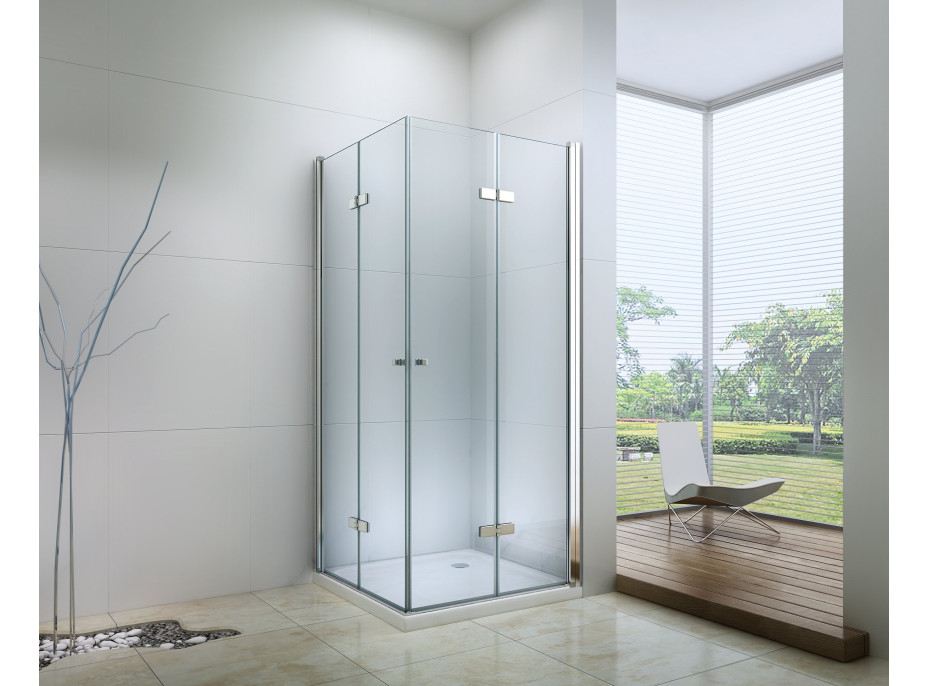 Skvelá voľba do každej kúpeľne. Elegantný sprchovací kút je vyrobený z 6 mm hrubého tvrdeného skla v čírom prevedení. Aplikovaná povrchová úprava skla zaisťuje maximálny komfort všetkým užívateľom. Táto technológia zaručuje jedinečné vlastnosti zabraňujúce znečisteniu skla - povrch stačí iba opláchnuť vodou. Kút je uchytený v chrómovaných hliníkových profiloch a je vybavený tesnením zabraňujúcim úniku vody mimo sprchovací kút. Dvere sprchového kúta sú skladacie (dve sklá spojené kvalitnými pántami s možnosťou zloženia dovnútra aj von). Na otváranie slúži decentná kovová rukoväť.