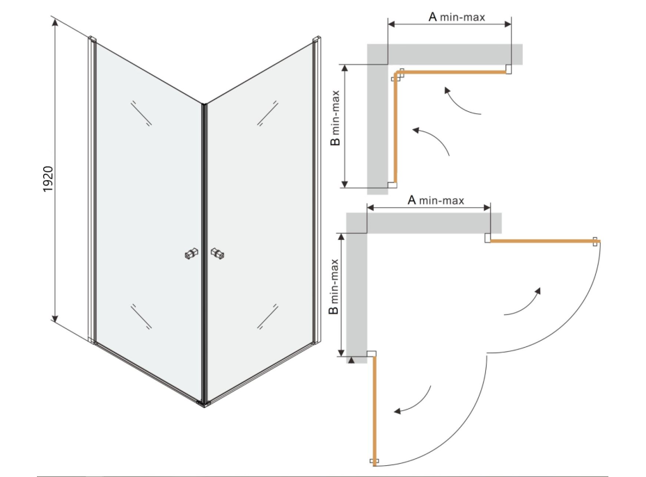 Sprchový kút PRETORA DUO sa skladá z dvoch krídlových dverí s možnosťou otvárania dovnútra aj von. Na otváranie slúžia decentné kovové rukoväte. Profilové lišty umožňujú reguláciu na vyrovnanie prípadných nerovností stien. Sprchový kút je možné inštalovať na sprchovú vaničku alebo priamo na podlahu so sprchovým žľabom.