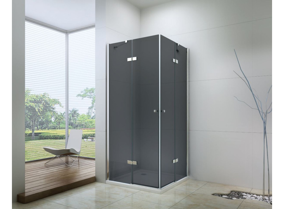 Skvelá voľba do každej kúpeľne. Elegantný sprchovací kút je vyrobený z 6 mm hrubého tvrdeného skla v grafitovom prevedení. Aplikovaná povrchová úprava skla zaisťuje maximálny komfort všetkým užívateľom. Táto technológia zaručuje jedinečné vlastnosti zabraňujúce znečisteniu skla - povrch stačí iba opláchnuť vodou. Kút je uchytený v chrómovaných hliníkových profiloch a je vybavený tesnením zabraňujúcim úniku vody mimo sprchovací kút. Dvere sprchového kúta sú krídlové. Na otváranie slúžia decentné kovové rukoväte. Dokonalú stabilitu sprchovacieho kúta zaisťujú dve ukotvujúce ramená, ktoré sú súčasťou výrobku.