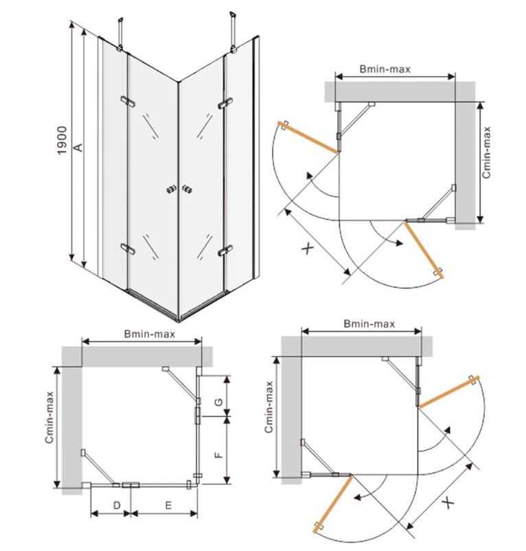 Skvelá voľba do každej kúpeľne. Elegantný sprchový kút je vyrobený zo 6 mm hrubého tvrdeného skla v čírom prevedení. Aplikovaná povrchová úprava skla zaisťuje maximálny komfort všetkým užívateľom. Táto technológia zaručuje jedinečné vlastnosti zabraňujúce znečisteniu skla - povrch stačí iba opláchnuť vodou. Kút je uchytený v hliníkových profiloch so zlatou povrchovou úpravou a je vybavený tesnením zabraňujúcim úniku vody mimo sprchový kút. Dvere sprchového kúta sú krídlové. Na otváranie slúžia decentné kovové rukoväte. Dokonalú stabilitu sprchového kúta zaisťujú dve ukotvujúce ramená, ktoré sú súčasťou výrobku.